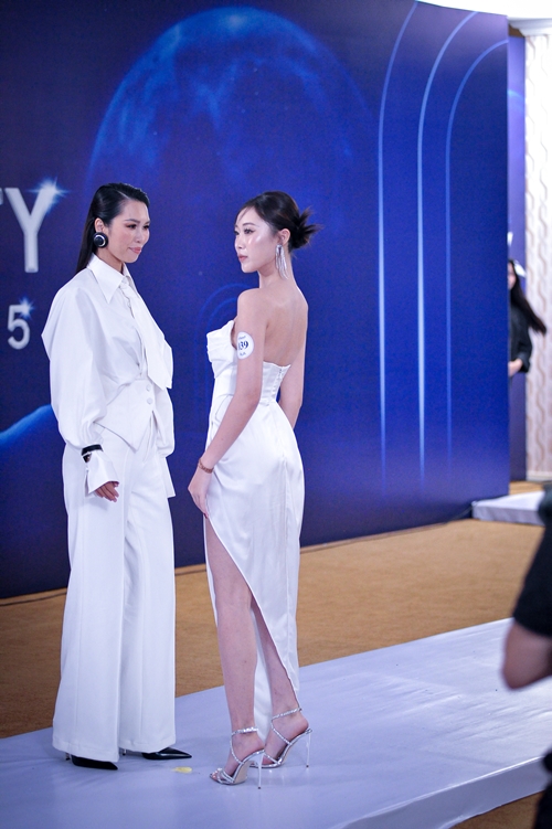 Trong phần trình diễn, thay vì chỉ sải bước đơn thuần, Phương Anh bất ngờ tiến về phía bàn giám khảo, mỉm cười mời siêu mẫu Hà Anh - Trưởng ban giám khảo lên catwalk cùng mình. Lời mời táo bạo này khiến hội trường lập tức ồ lên phấn khích.