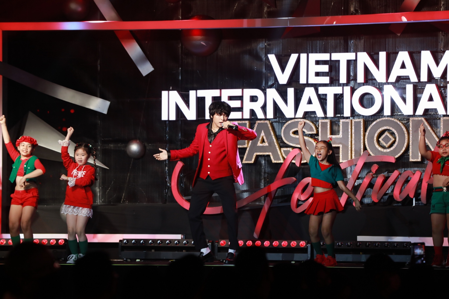 Thiên Khôi vừa làm ca sĩ, vừa biểu diễn thời trang trong sự kiện Vietnam International Fashion Festival