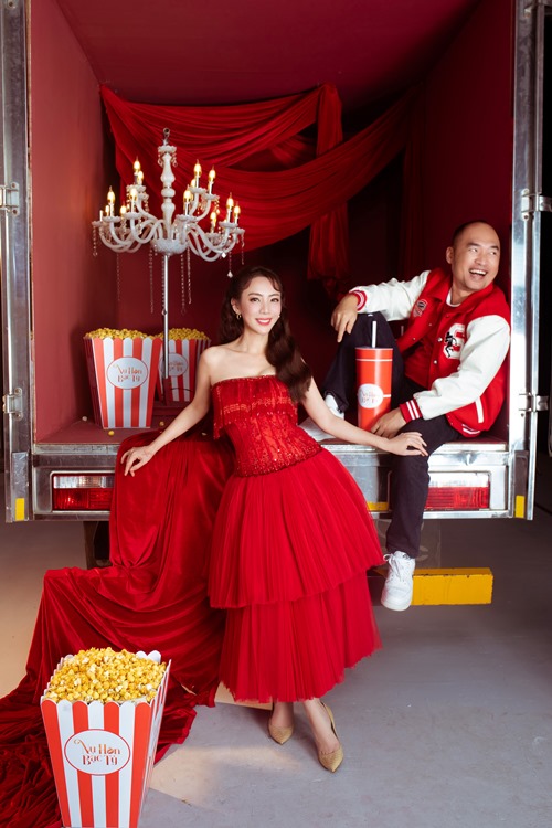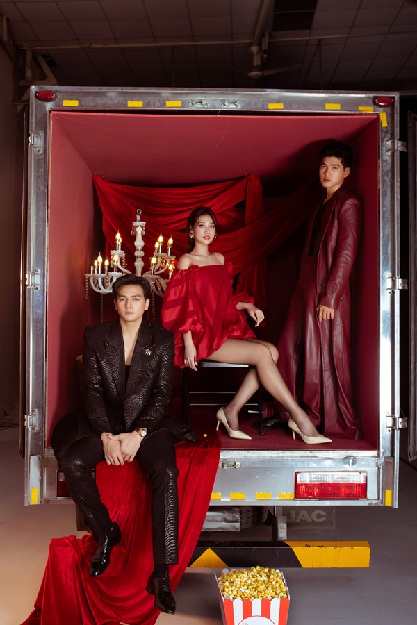 Trong những trang phục mang tông đỏ - đen, các diễn viên thu hút sự chú ý bởi vẻ rạng rỡ, thời thượng. Hình ảnh bắt mắt này hoàn toàn khác xa tạo hình trong phim Nụ hôn bạc tỷ.