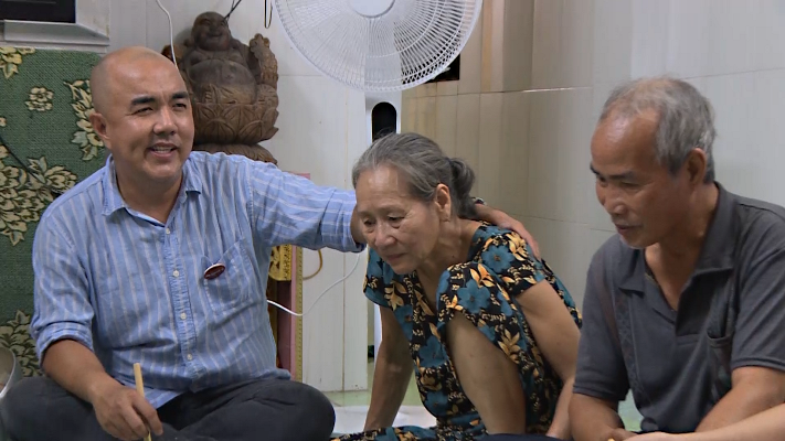 Trong căn nhà nhỏ của bà Sang là đại gia đình 3 thế hệ với đôi vợ chồng già, gia đình anh Thành và gia đình em trai - anh Toại (38 tuổi). Đoàn tụ, ấm cúng là thế nhưng phải đến khi ekip "Gõ Cửa Thăm Nhà" đến, đại gia đình mới có một bữa cơm đầy đủ thành viên sau hơn 1 năm. "Nhà tôi Tết đến còn không có được bữa cơm gia đình. Con tôi đi tứ xứ, con dâu thì về quê. Bình thường mấy đứa nhỏ bận rộn nên tôi cũng hiểu, mỗi người một tô là xong." - bà Sang chia sẻ.