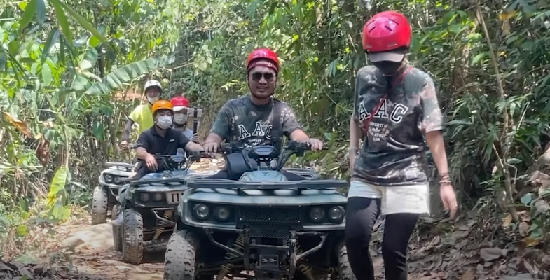 Tiến Luật bị bỏng pô xe địa hình khi chở vợ đi qua rừng