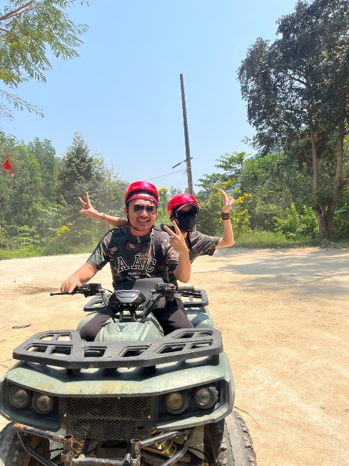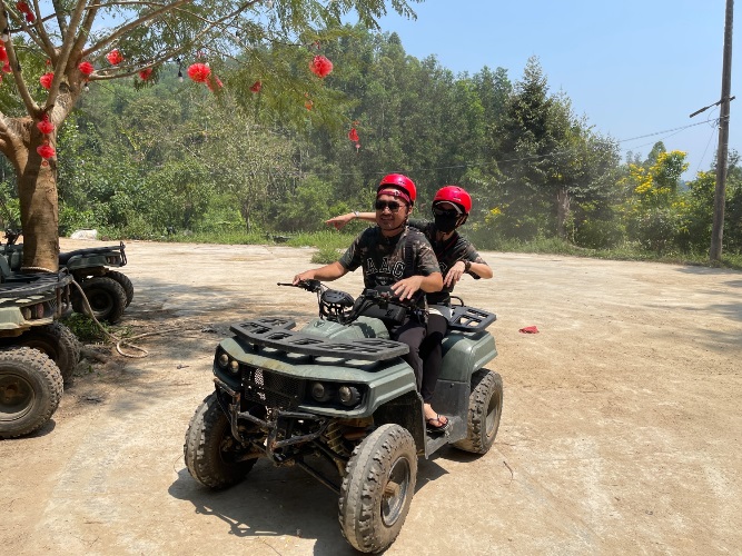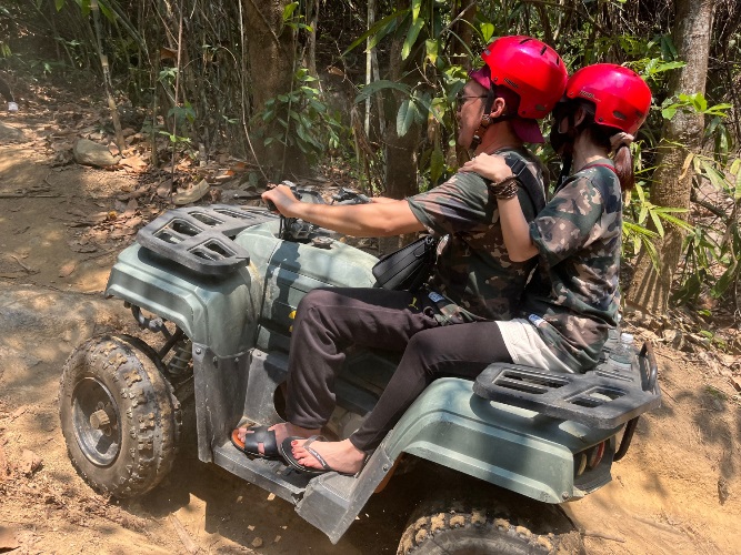 Mở đầu vlog, Tiến Luật - Thu Trang đến khu du lịch sinh thái và cùng chạy xe địa hình ATV. Để pha trò, Tiến Luật tố Thu Trang sợ độ cao nên không chơi các trò mạo hiểm. Tuy nhiên, Thu Trang lập tức phản pháo rằng chị không sợ độ cao, người sợ độ cao chính là Tiến Luật. Để "che giấu" điều này, Tiến Luật chỉ còn cách đổ lỗi cho vợ.