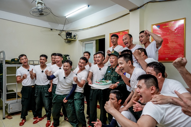 Sau một ngày tập luyện đầy căng thẳng, không khí trong đơn vị bỗng trở nên ấm áp lạ thường. Đại úy Lê Đức Đạt và Trung tá Nguyễn Văn Giáp tổ chức buổi họp giao ban ngay trong phòng chiến sĩ, không giáo án, không huấn lệnh mà chỉ còn lại những tiếng cười. Những khoảnh khắc đẹp đẽ hơn hết là khi các nghệ sĩ bỗng diễn tiểu phẩm gây gỗ để bất ngờ hát tặng sinh nhật Trung tá Giáp cùng những đồng chí có ngày sinh trong tháng.