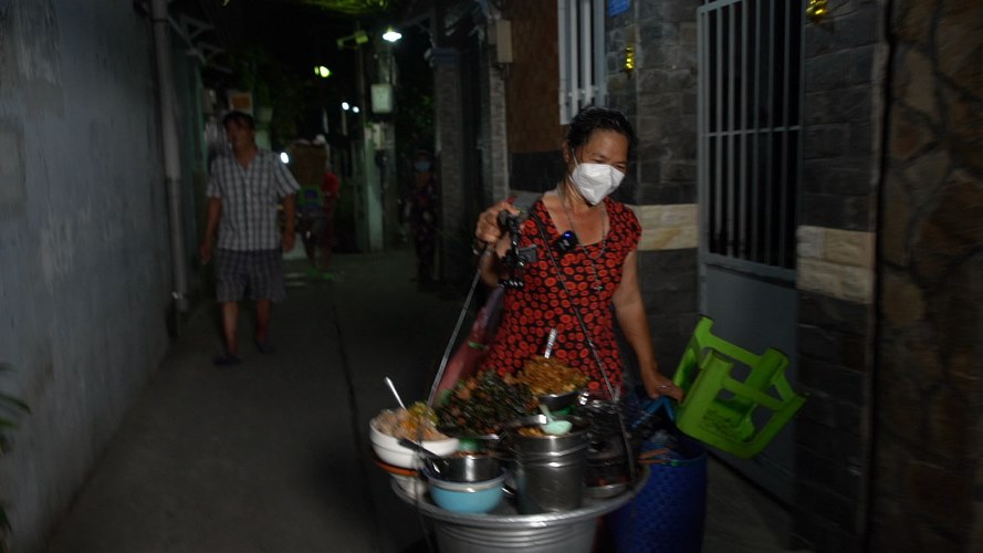 Cô Lan bán bánh mì bò lá lốt tính đến nay đã hơn 35 năm, ngoài những miếng thịt bò cuốn lá lốt được nướng thơm lừng thì cô còn có thêm nhân xíu mại, cá mòi, bì cùng các nguyên liệu khác. Gánh hàng của cô Lan không chỉ thu hút bởi hương vị thơm ngon, màu sắc bắt mắt mà còn bởi mâm gánh đơn sơ nhưng đậm hình ảnh của một Sài Gòn xưa. Thế nhưng mấy ai biết được để có được mâm thịt nướng thơm ngon hấp dẫn, người phụ nữ ấy phải dậy từ 3h sáng để chuẩn bị các nguyên liệu, từ cắt gọt đến nấu nướng đều do một tay cô làm. Nhìn đôi quang gánh trên đôi vai đong đưa theo từng bước chân người phụ nữ, có lẽ chẳng ai nghĩ nó nặng đến gần 50kg, một khối lượng mà ngay cả Color Man cũng khó có thể nhấc lên. Thế nhưng, cho dù gánh bánh mì có nặng đến đâu thì cô cũng phải gồng mình để gánh. Bởi trên vai của cô không chỉ mang sức nặng của một gánh hàng rong mà còn là sức nặng của 4 chữ “cơm, áo, gạo, tiền” đè lên. Chồng thất nghiệp, con gái lớn bị dị tật khả năng nói, 2 đứa nhỏ còn lại cũng đang tuổi ăn tuổi học nên không ai phụ giúp được gì. Có thể nói, cả gia đình giờ đây chỉ trông cậy vào cô Lan và gánh bánh mì của cô. Dù làn da sạm đi vì mưa nắng, sức khỏe yếu dần bởi những lo toan, bộn bề nhưng chỉ cần nghĩ về gia đình nhỏ của mình cô Lan lại tiếp tục gồng gành, bước đi trên những con phố đông người.