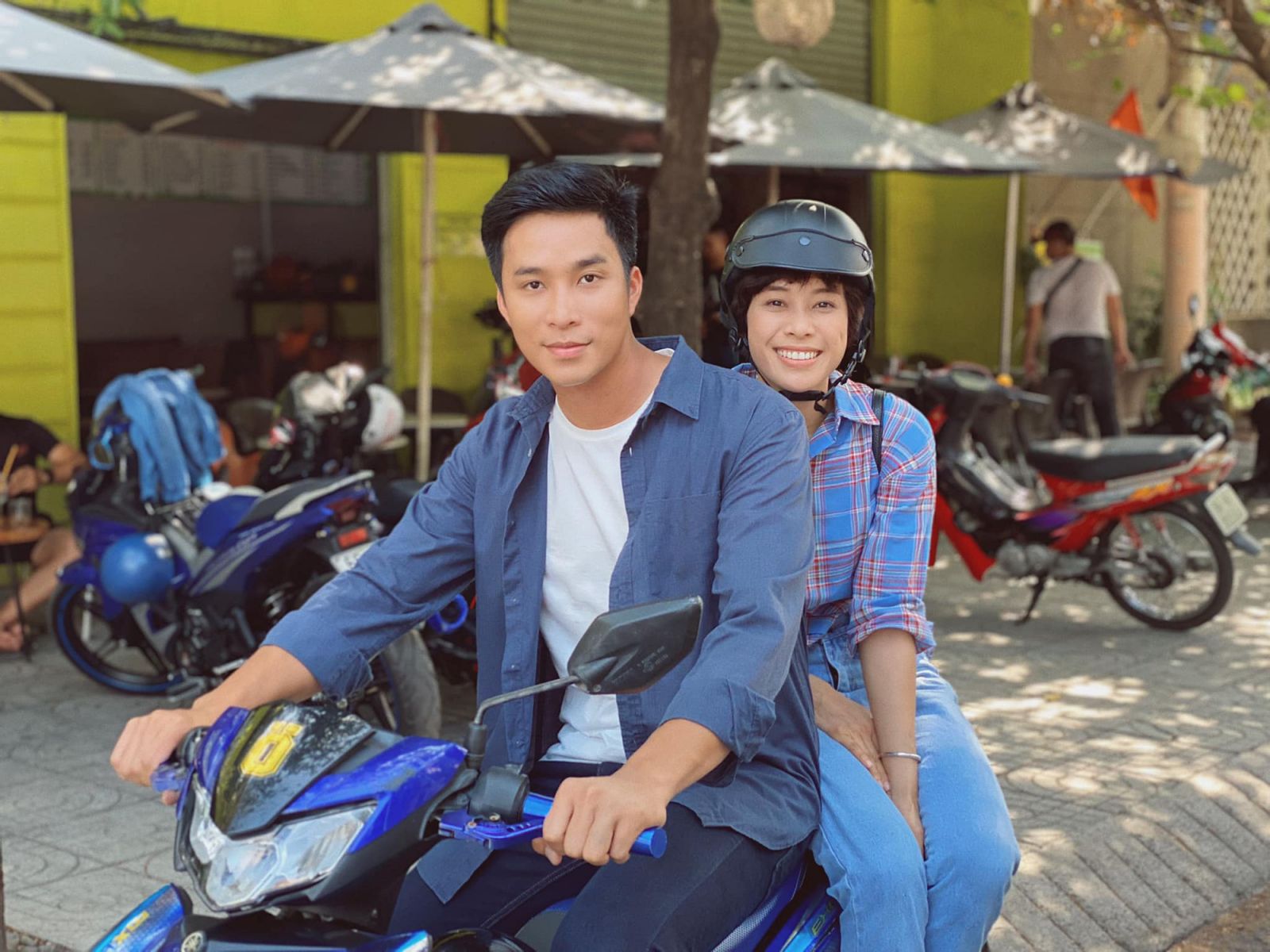 Mạnh Đồng (Thần Tượng Bolero 2017) và Lê Chi Na trên phim trường. Mạnh Đồng sẽ vào vai một cán bộ công an điển trai tên Phan Khánh.