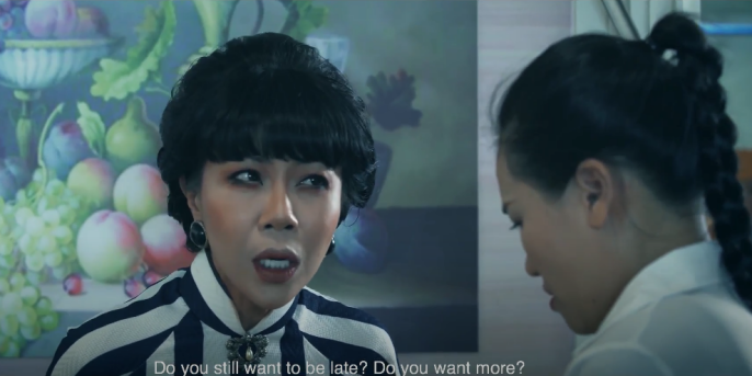 Nối gót anh phụ bếp là đến cô bé phục vụ xinh tươi bị “chị đẹp” mắng té tát vì tội đã mặc sai đồng phục mà còn theo kiểu hờ hững, “Em ăn bận như vậy, em đánh cái son như vậy, rồi em bưng rổ rau rồi tôi tưởng em bán trái cây lái thiêu?”.