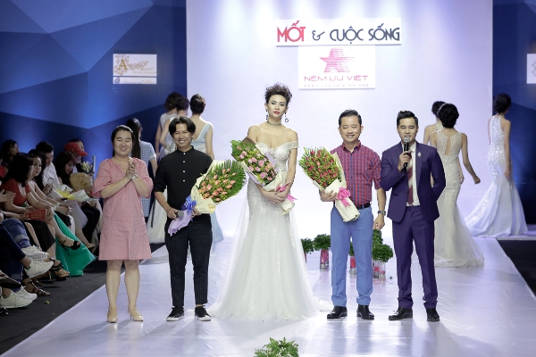 Nhà thiết kế Hoài Sang tặng hoa cho ê kíp chương trình gồm đạo diễn Nguyễn Quý Khang, Tạ Nguyên Phúc và Võ Hoàng Yến