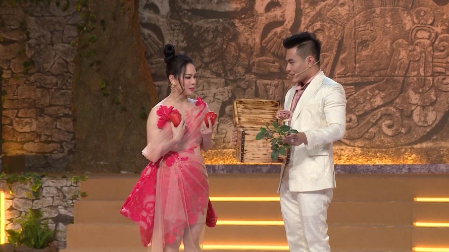 Sau khi tặng đồng nghiệp 2 trái ớt chuông với lời chúc “dẫn cho suôn”, Lê Dương Bảo Lâm bất ngờ yêu cầu Nhật Kim Anh đoán tên thủ lĩnh thông qua đồ vật. Nhìn những món đồ trong tay thánh livestream, giọng ca Lâu Đài Cát nhất thời không thốt lên lời. Không chờ đợi Lê Dương Bảo Lâm liền giải đáp: “Bông hoa – xin mời thủ lĩnh Võ Đăng Khoa. Hạt – xin mời thủ lĩnh Hứa Minh Đạt. Cài – xin mời thủ lĩnh Anh Tài”. Màn giới thiệu thủ lĩnh hài hước của 2 MC khiến cả trường quay ôm bụng cười.