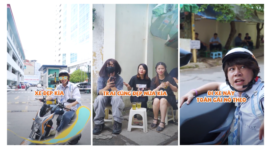 Điều thú vị là, có một chiếc xe điện cool ngầu đang chiếm sóng cực mạnh trong các video đậm chất thanh xuân này. Chiếc xe chiếm “spotlight” khiến người xem phải lòng ngay ánh nhìn đầu tiên bởi thiết kế nổi bật, cá tính cùng màu sắc thời trang, phá tan định kiến xe chỉ là phương tiện di chuyển bình thường.