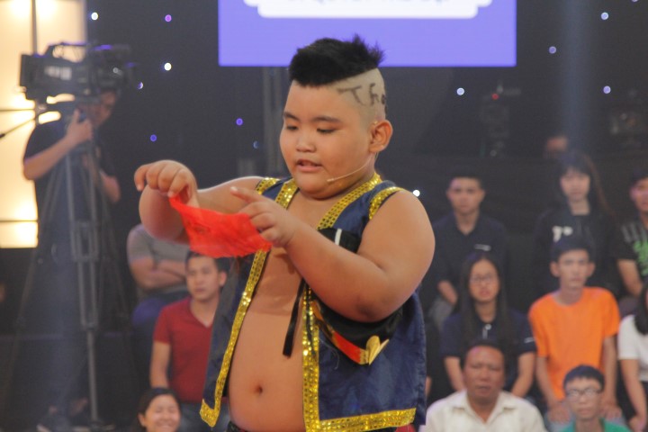 Tiếp đến sẽ là phần thi của cậu bé có thân hình mũm mĩm Huỳnh Đăng Khoa với mái tóc có tạo hình ấn tượng cũng sẽ khiến cho hai giám khảo bất ngờ. Và càng bất ngờ hơn nữa khi cậu bé cùng hai người bạn phụ diễn của mình diễn màn ảo thuật vô cùng hài hước.