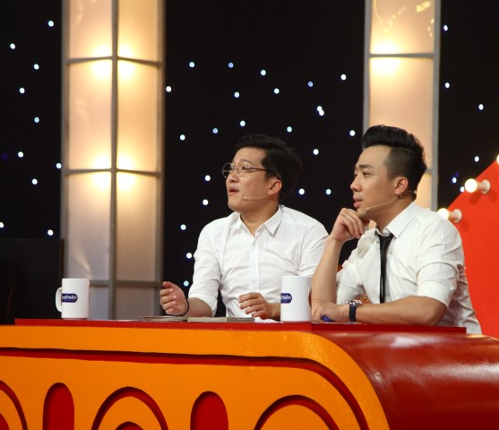 Hai giám khảo xuất hiện trong trang phục áo sơ mi trắng