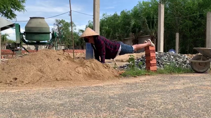 Trường Giang “phụ hồ” ở quê vẫn không quên plank theo cách không giống ai