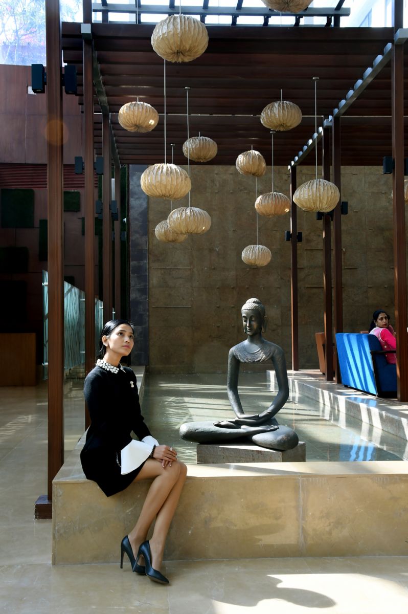 Sau những buổi hội thảo đầy sôi động, nàng Trương cũng có những khoảnh khắc lắng đọng dưới ánh nắng vàng trong khuôn viên khách sạn Carlson sang trọng bậc nhất của thành phố Hyderabad, như nói lên tâm trạng nhẹ nhàng lịch thiệp của một cô gái hiền hòa xinh đẹp trong những ngày trên đất Ấn.
