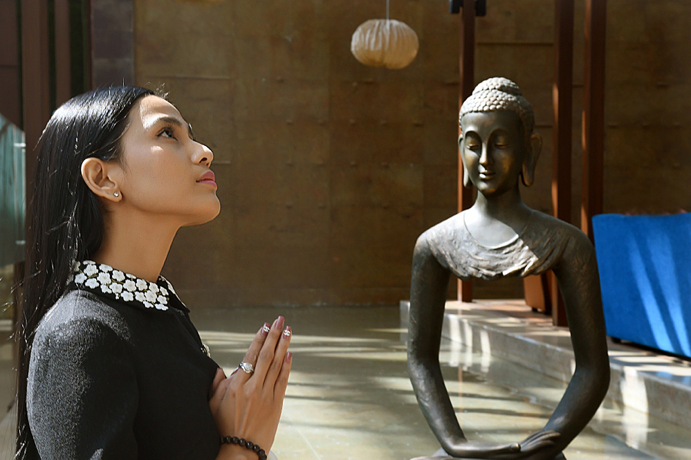 Đây không phải là lần đầu tiên “mỹ nhân ăn chay” đặt chân đến vùng đất Phật, nên cảm giác luôn nhẹ nhàng thanh thản như đón nhận tất cả những niềm vui từ sự kiện quan trọng này.