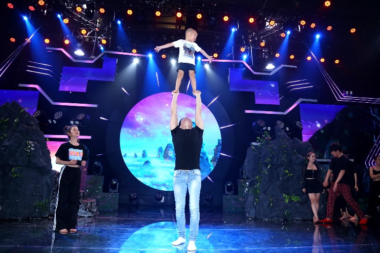 Như thường lệ, Hùng Tâm rất dạn dĩ bởi đã biểu diễn cùng cha mẹ nhiều lần. Có lẽ việc NSƯT Quốc Nghiệp cho con làm quen với bộ môn xiếc từ bé đã giúp Hùng Tâm tự tin trong phần biểu diễn. Tuy nhiên, Hùng Tâm khi được ba nâng lên cao, bỗng ngại ngùng: “Bà Bá con muốn mặc đồ khác” vì chiếc áo liên tục bị tốc xuống, trong quá trình tập luyện. Nét đáng yêu của cậu bé khiến mọi người chứng kiến không thể nhịn được cười.