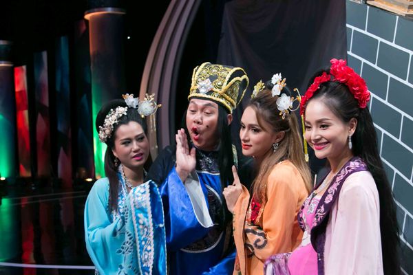Cuối cùng là sân khấu nghiêng “Bí mật cung cấm”. Mong muốn đổi đời, Hương Giang, Lâm Vĩ Dạ rủ nhau thi tuyển làm cung nữ. Ngay khi xuất hiện, Lâm Vĩ Dạ đã khiến Chí Tài công công “bật ngửa” bởi giọng nói ồm ồm như đàn ông, Công Công Chí Tài liền hỏi “đàn ông hay đàn bà, sao tiếng thấy ghê quá vậy?’. Hương Giang vội vàng thanh minh cho người chị em: “Hai chị em con mới ở bên về, con hoàn thành rồi còn nó đang trong quá trình, chưa xong”. Hương Giang mơ ước được vào cung để ăn yến, trong khi đó Lâm Vĩ Dạ mơ được làm Hoàng Thái Hậu. Hương Giang lập tức chê bai Lâm Vĩ Dạ “mặt già như Hoàng Thái Hậu”. Lâm Vĩ Dạ đáp trả: “Mấy đứa đẹp thường vô duyên”. Lan Phương cung phi xuất hiện với bụng bầu 7 tháng. Bất chấp bụng mang dạ chửa, Lan Phương vẫn bất chấp “thị phạm” cách chào Hoàng thượng với tư thế bồ câu. Chí Tài tiết lộ hình phạt kinh khủng nhất trong cung chính là tước bỏ đôi giày cao gót của Việt Hương tống vào lãnh cung cho “lùn mãi mãi”.