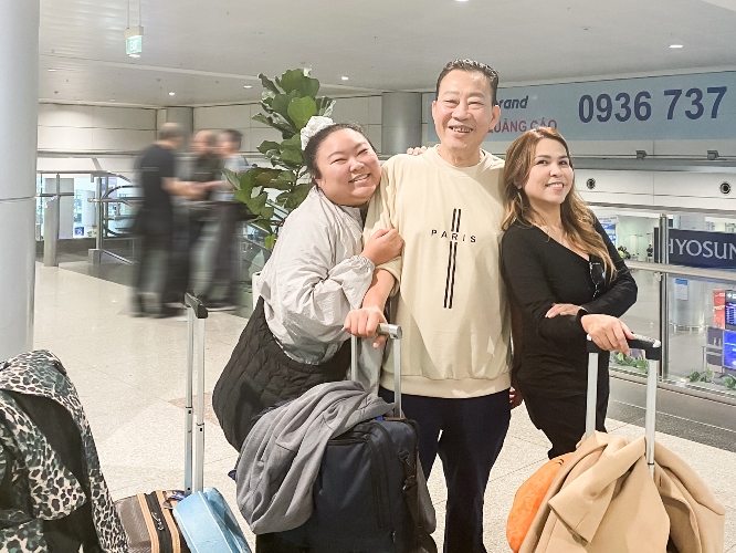 Ngày 26/11, vợ chồng nhạc sĩ Lê Quang – ca sĩ Cam Thơ đã đáp chuyến bay từ California (Hoa Kỳ) về sân bay Tân Sơn Nhất, TP.HCM. Dù trải qua chuyến chuyến bay dài nhưng nam nhạc sĩ cùng vợ rất vui khi được những người thân, bạn bè, người hâm mộ ra tận sân bay đón tiếp.