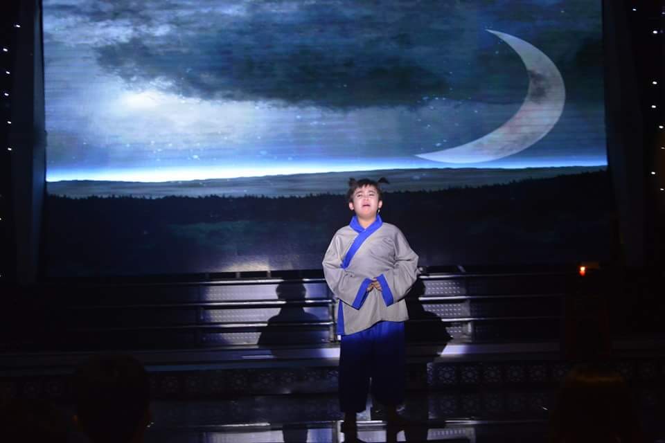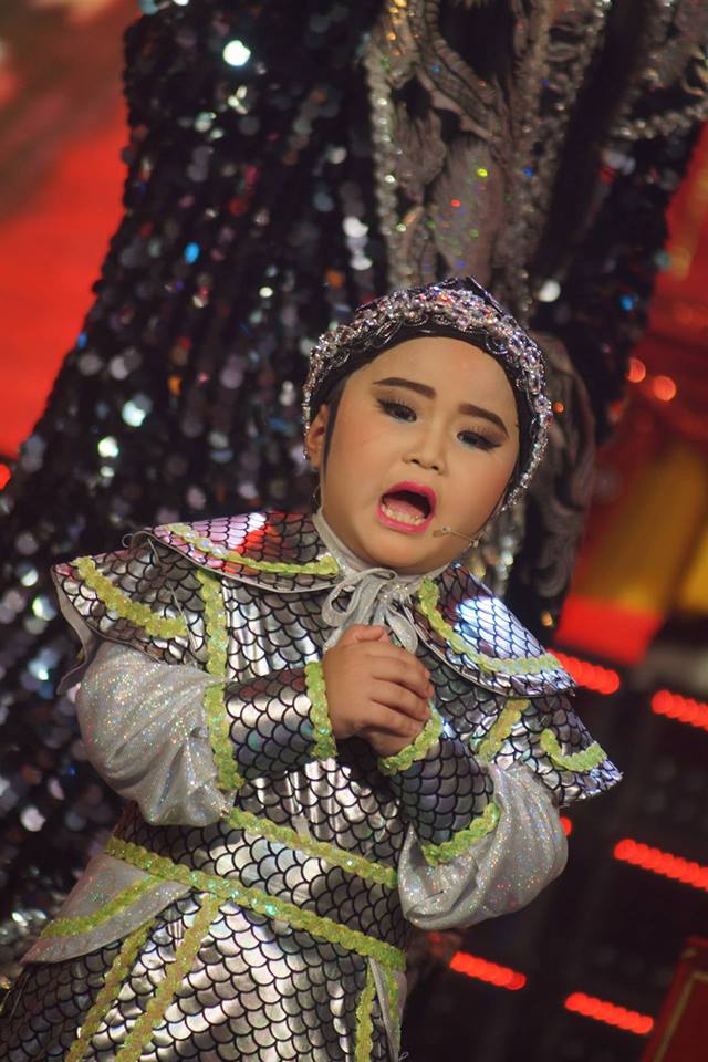 Bé Gia Nguyên cùng NSUT Lê Hồng Thắm, Võ Minh Lâm trong trích đoạn "Thiếu phụ Nam Xương"