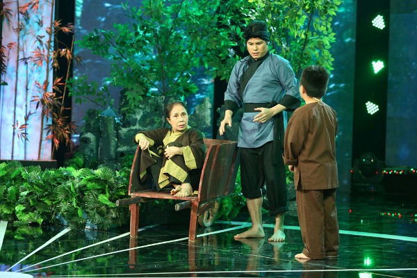 Tiếp đến, cô nàng Phương Cẩm Ngọc của đội HLV Kim Tử Long mang thông điệp chúng ta đừng vội đánh giá một con người thông qua nghề nghiệp mà họ đang làm vì có rất nhiều người không thể chọn được công việc ưng ý cho mình qua tiết mục "Chữ Hiếu Trăm Đường"