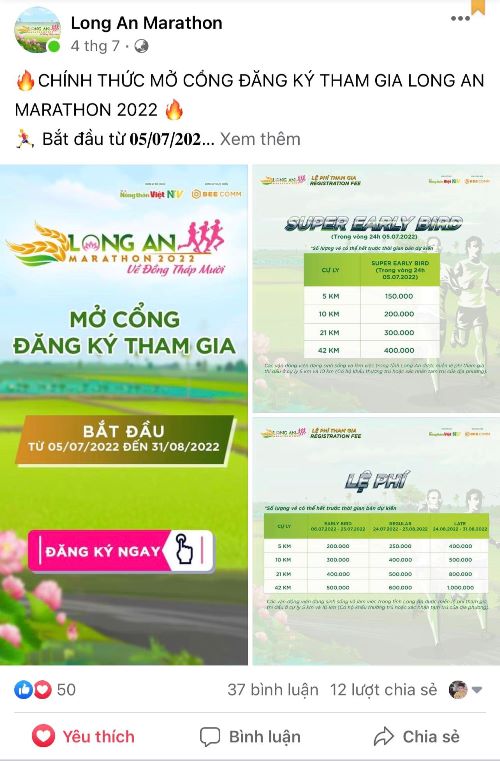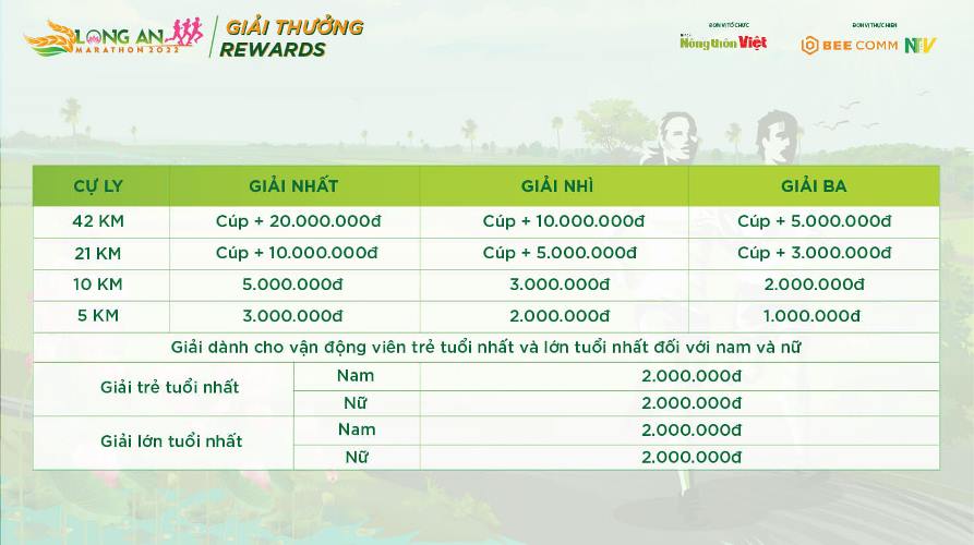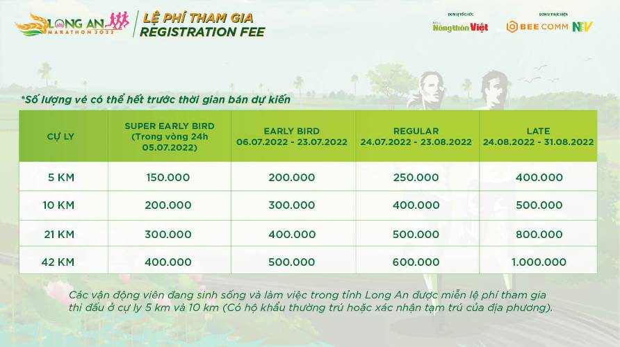 Ngay từ bây giờ, các vận động viên có thể đăng ký tham gia giải chạy với nhiều cự ly khác nhau theo đường link: https://raceez.com/event/long-an-marathon-2022/tickets
