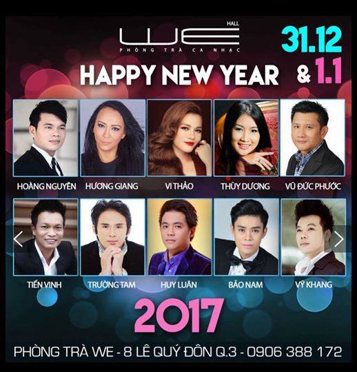Vào những dịp lễ tết, phòng trà We luôn thực hiện những chương trình mang chủ đề nhằm đem đến những cảm giác mới lạ và thú vị cho khán giả. Chịu trách nhiệm những chương trình chủ đề này do anh Việt Nam hoặc Công Thanh lên kế hoạch để thực hiện cùng các ca sĩ. Góp mặt trong đêm nhạc “Chào năm mới 2017” là các gương mặt chủ lực của phòng trà và luôn được khán giả yêu mến như Hương Giang, Thuỳ Dương, Hoàng Nguyên, Vi Thảo, Huy Luân, Vũ Đức Phước, Vỹ Khang, Trường Tam, Bảo Nam, Tiến Vinh với những ca khúc trẻ hơn, năng động hơn.