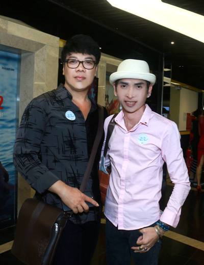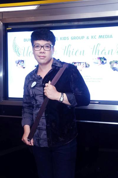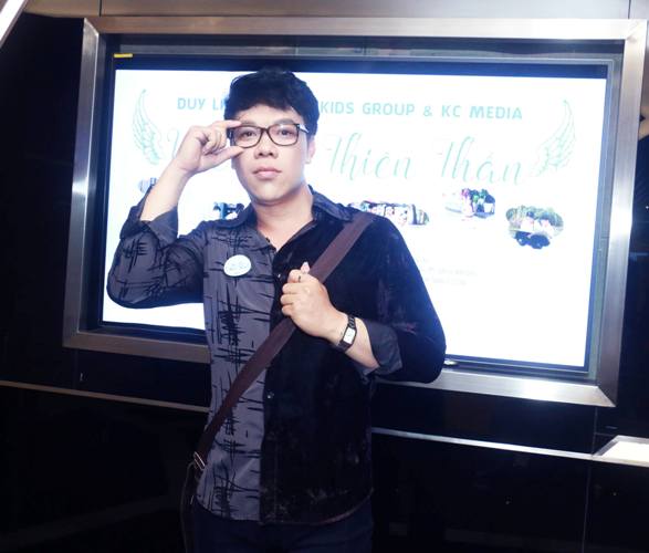 Chiều qua, ca sĩ Vỹ Khang đã diện bộ trang phục đơn giản đến chúc mừng đạo diễn Tạ Nguyên Phúc ra mắt phim ngắn "Ước mơ thiên thần" tại Mega GS.