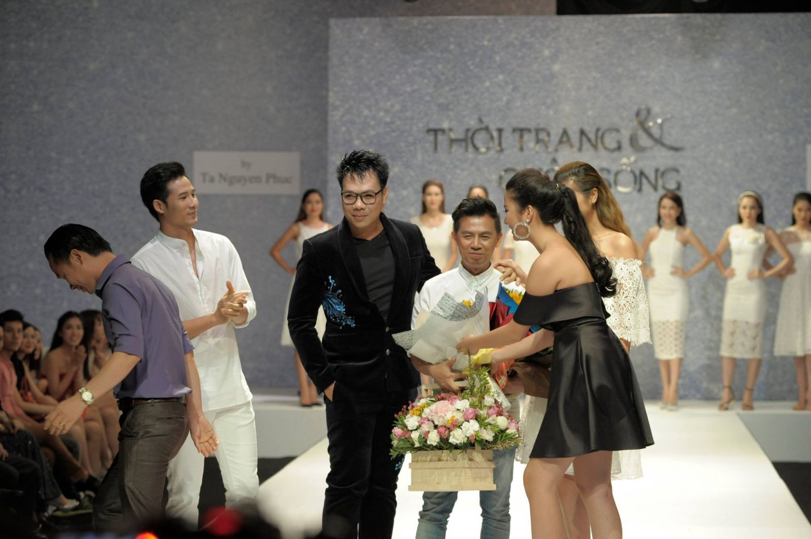 Vỹ Khang và các người mẫu chúc mừng bộ sưu tập của Tạ Nguyên Phúc