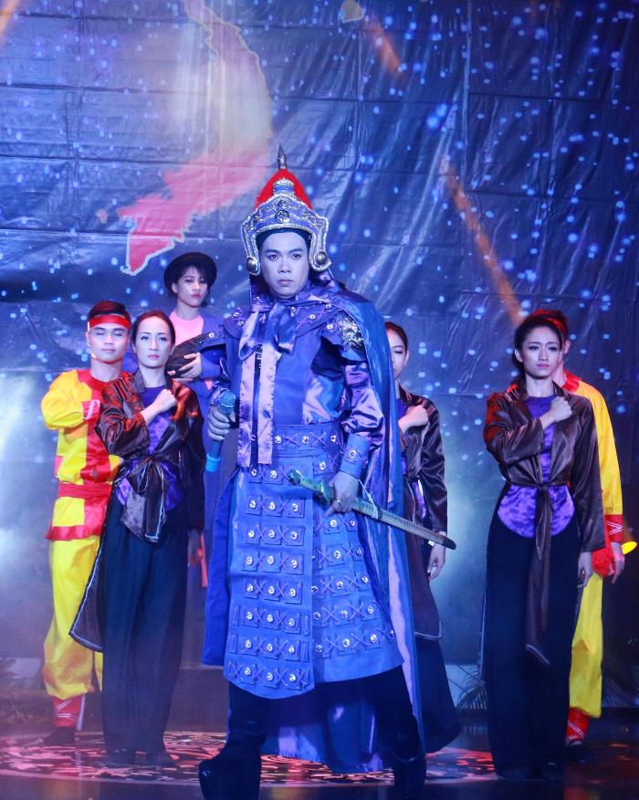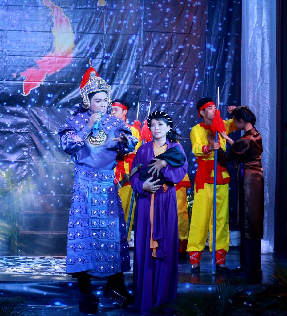 Với trích đoạn "Tiếng trống Mê Linh", đôi nghệ sĩ Chí Linh - Vân Hà đã làm sống lại hào khí của ông cha trong chiến đấu dành độc lập.