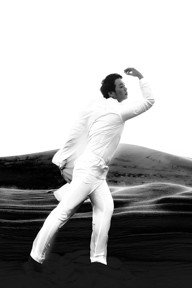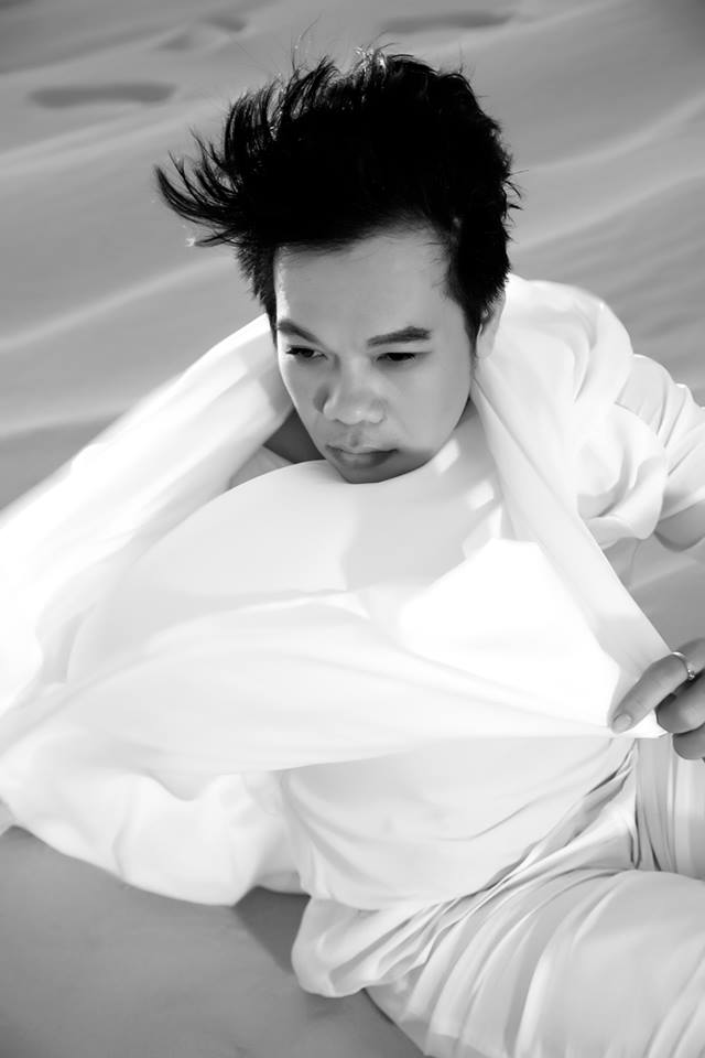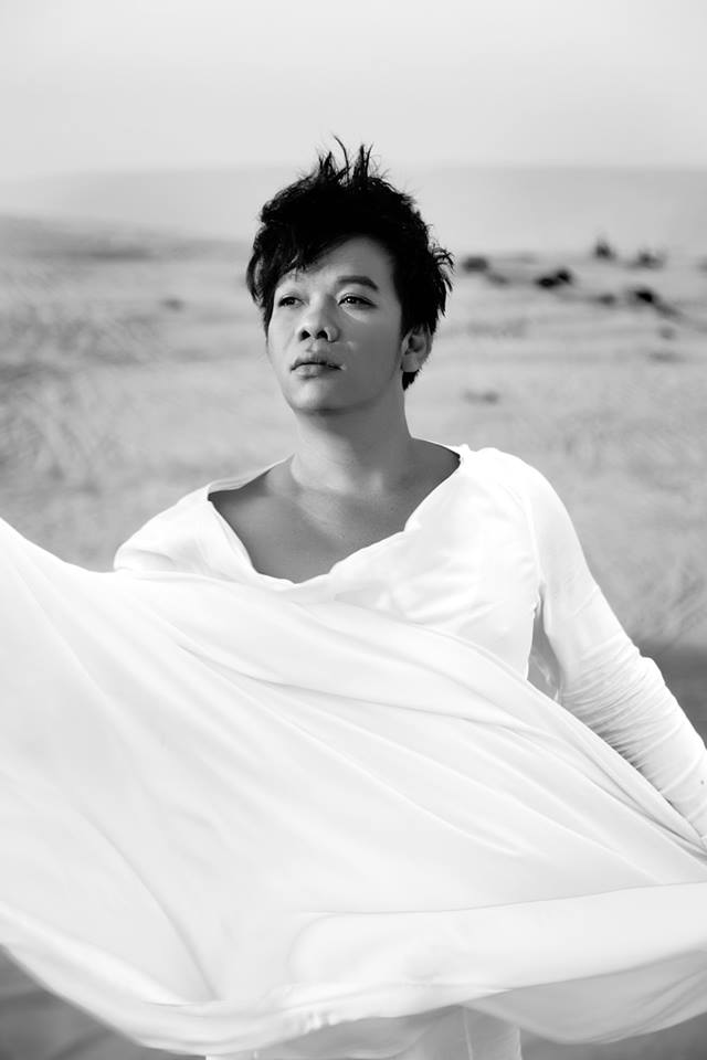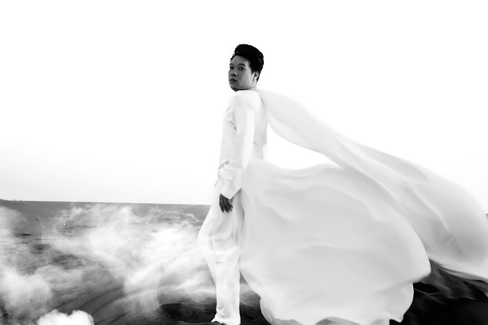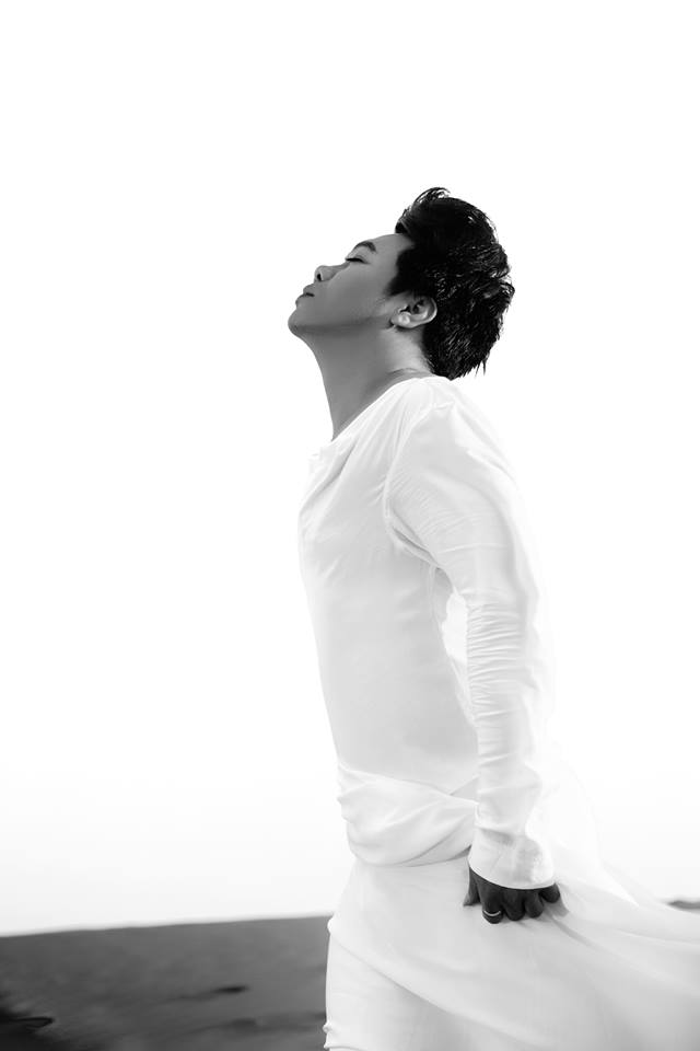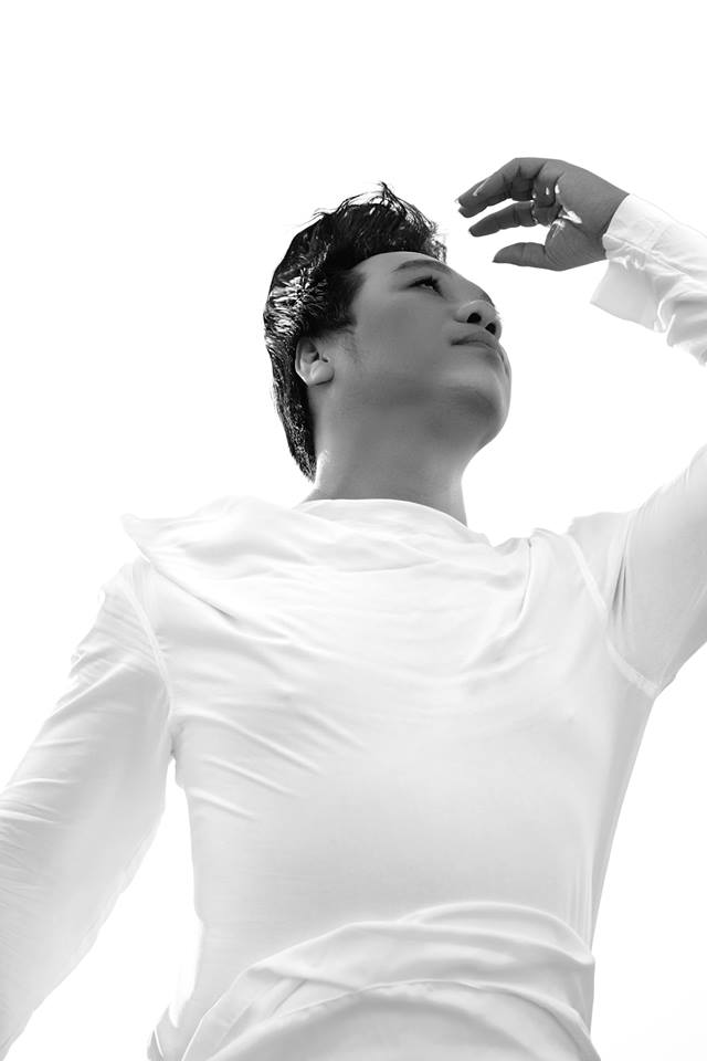 Bộ ảnh với tông màu trắng và nét diễn "lạnh" của Vỹ Khang là một sáng tạo mới của "Hoàng tử phòng trà"