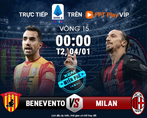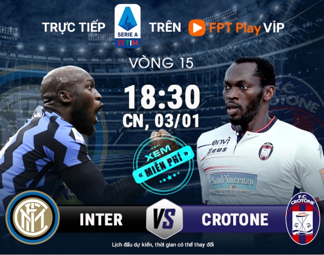 Vào hai ngày 03 và 04/01/2021, những tín đồ bóng đá có thể xem hai trận Inter Milan - Crotone (18h30, 03/01/2021) và Benevento - AC Milan (00h00, 04/01) thuộc mùa giải Serie A 2020/2021 hoàn toàn miễn phí trên ứng dụng FPT Play.