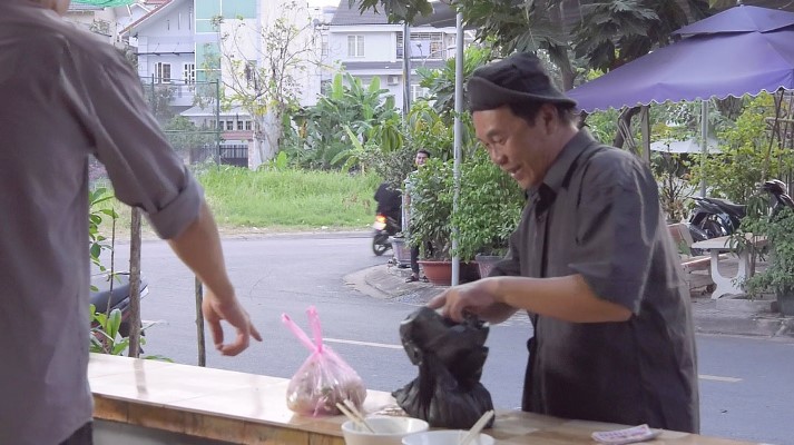 Một người cha bán vé số nghèo khổ luôn “chầu chực” trước tiệm hủ tiếu. Mục đích của ông là xin những đồ ăn thừa của khách để mang về cho cậu con trai đang bị bệnh. Mặc kệ sự mắng chửi và xua đuổi của bà chủ, người cha vẫn luôn xuất hiện với mong muốn cho con trai no bữa vào mỗi ngày. Mang tô hủ tiếu nở “nát bét” về cho cậu con trai, hai cha con đều viện cớ mình đã ăn no đủ để nhường cho đối phương.