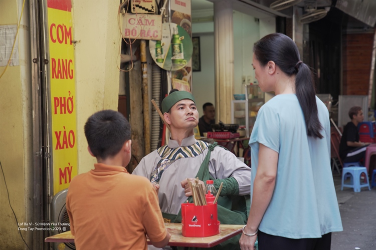 Quỳnh dừng lại trước một tiệm Phở và cảm thấy đói bụng. Quỳnh thấy một đứa trẻ bước vào tiệm và gọi một tô phở “tái nạm”, Quỳnh cũng bắt chước gọi theo. Bà chủ thấy Quỳnh mặc đồ lạ lẫm thì tỏ vẻ lo ngại hỏi Quỳnh có tiền không, Quỳnh tự tin lôi trong túi ra đống ngân lượng của thời xưa, bà chủ tức giận tưởng Quỳnh chọc phá liền nhanh chóng đuổi đi.