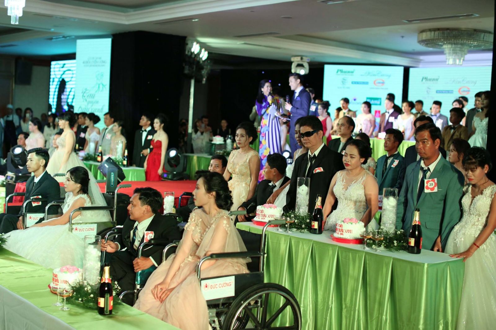 Đám cưới tập thể cho 40 cặp cô dâu chú rể khuyết tật đã được tổ chức tối 17/10 tại trung tâm tiệc cưới Long Biên Palace, Tp.HCM với sự tham dự của rất nhiều nghệ sĩ nổi tiếng.