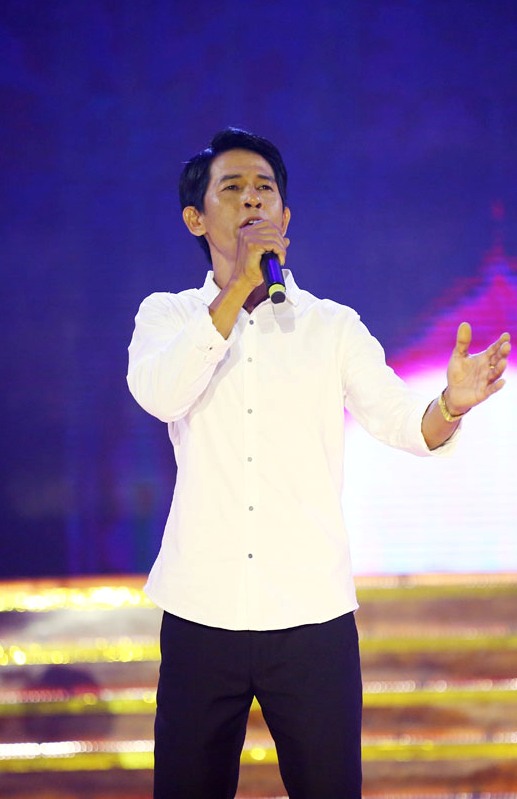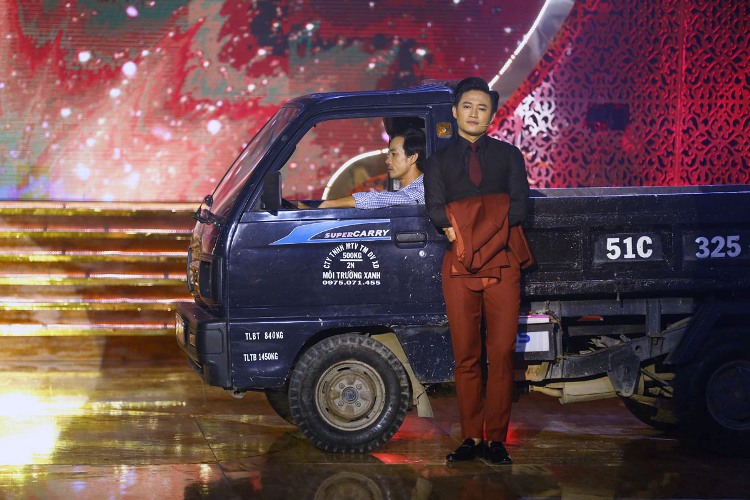 Quý Bình dẫn chương trình trên xe tải
